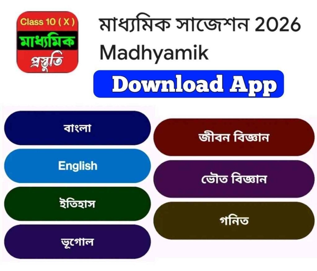 Google Play Store এ গিয়ে Madhyamik Suggestion 2026 লিখে সার্চ করে Install করুন। অবশ্যই App এর Logo দেখে সঠিক অ্যাপ install করবেন